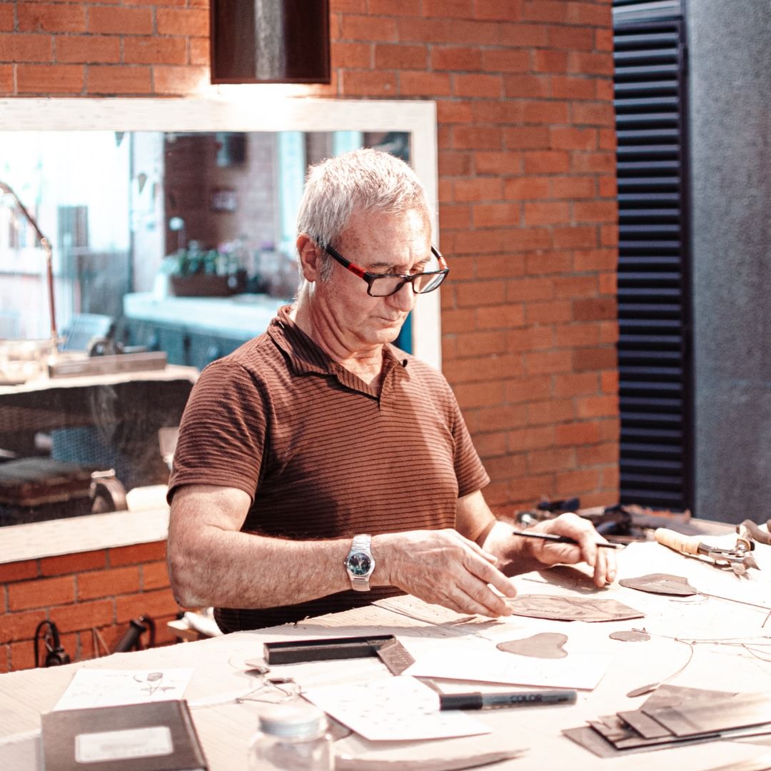 Cada pieza es fabricada solamente por el autor totalmente a mano.