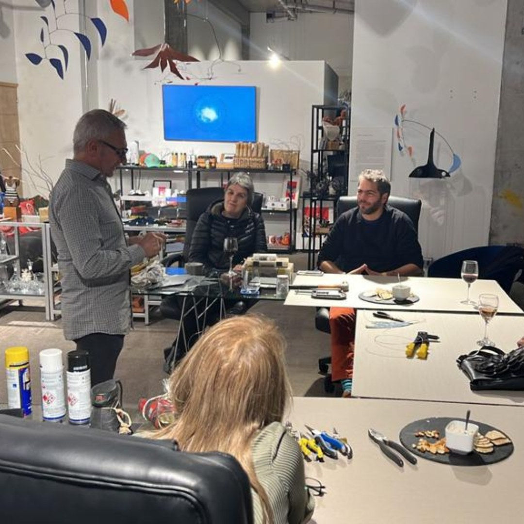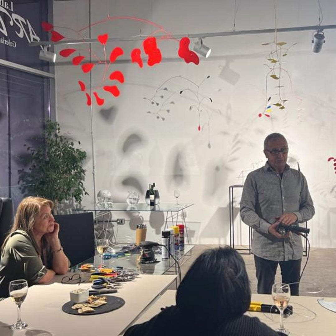 Descubre esculturas cinéticas y móviles de arte hechos a mano por Mauricio Russo Camhi. Obras únicas para colgar o exhibir sobre superficie.